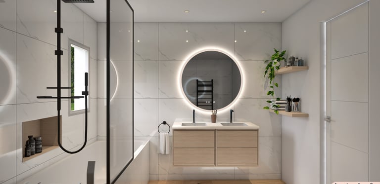 Aujourd’hui, j’interviens aussi bien en électricité que dans des projets de rénovation intérieure plus larges : rénovation complète, création et rénovation de salles de bain, cuisine, pose de carrelage, fourniture et pose de menuiseries sur mesure et aménagement intérieur.